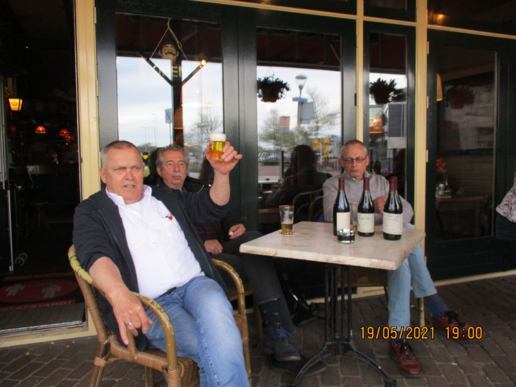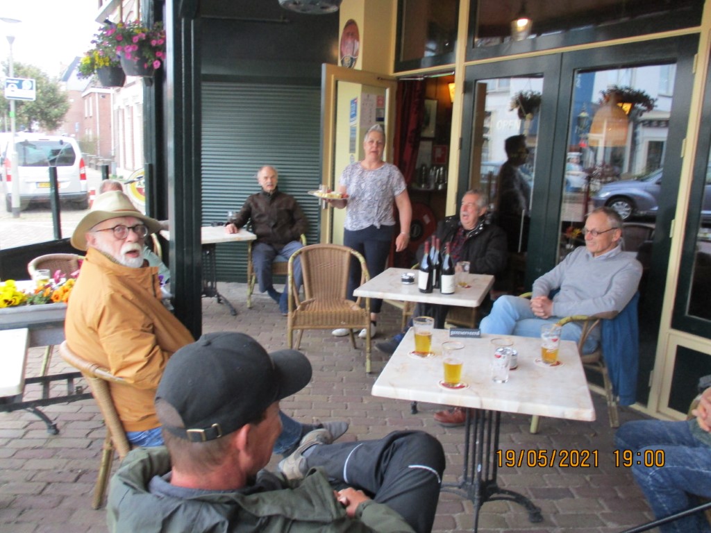 Afgelopen donderdag 20 mei was het terras van café De Zon voor het eerst geopend tot 20:00 uur. Laat dat nou toevallig precies de dag zijn dat Het Paard van Ree 35 jaar bestaat! En als je dan Dennis Krassenburg heet ben je daar als de kippen bij om iets te organiseren. Een borrel met hapje is dan snel geregeld en de opgekomen genoten konden zich hieraan kort maar hevig laven. De mannen van het eerste uur uit 1986 waren aanwezig op dit gedenkwaardig moment, Dennis dus maar ook genoot Johan Kroon gaf door zijn aanwezigheid blijk van dit historisch besef.